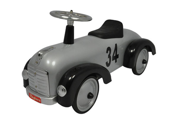 Steel de show met deze retro Speedster van Baghera. De loopauto met prachtig zachtgrijze kleur lijkt met zijn look rechtstreeks uit de jaren 50 te komen. Met de stoere grill en koplampen maakt u tijdens uw ritjes gegarandeerd indruk. De loopauto heeft een zachte grijze zitting en geluidsarme wielen. Dankzij het rubberen laagje op de wielen maakt de Speedster geen krassen op de vloer. Zo kunt u dit model zowel binnen als buitenshuis gebruiken. Ga op avontuur met deze veilige loopauto voor kids vanaf 1 jaar.