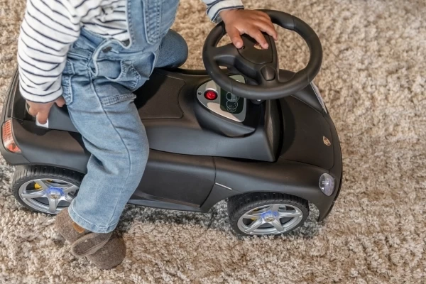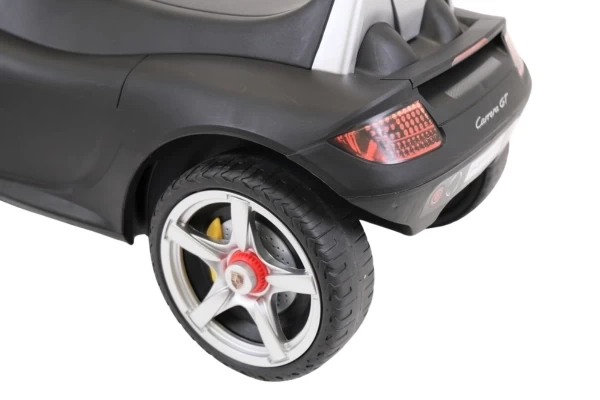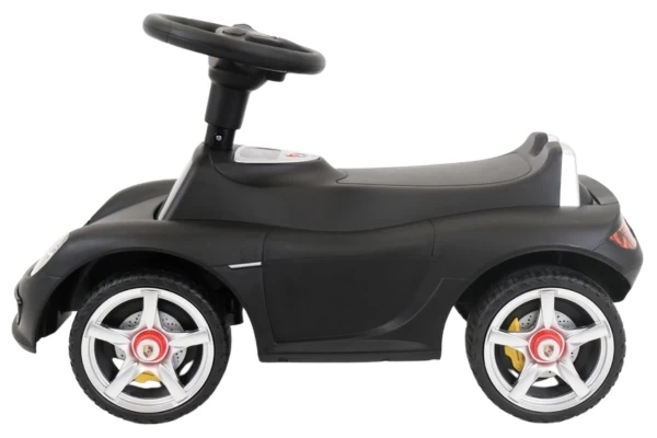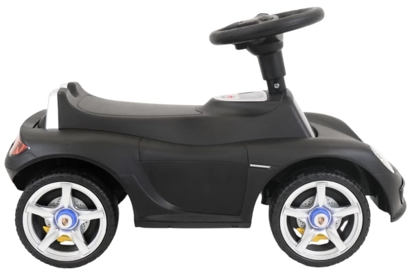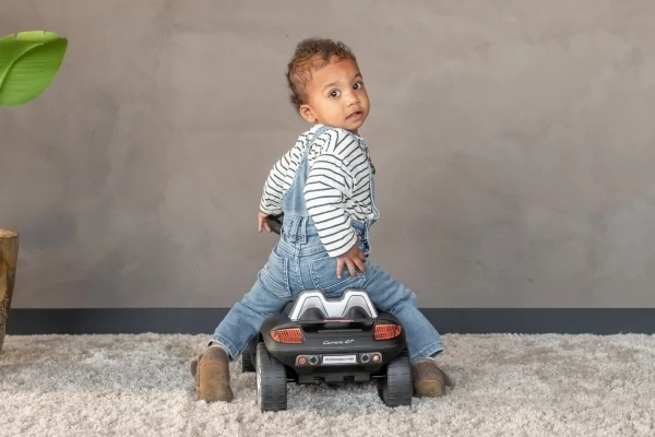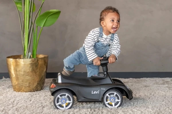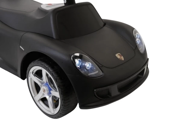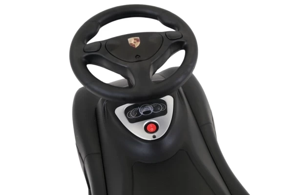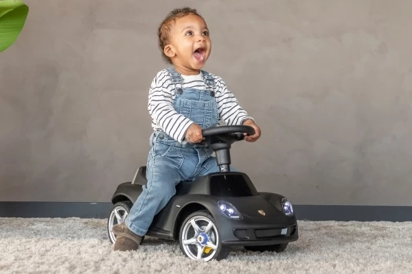 Een stoere Porsche Carrera GT loopauto met écht werkende koplampen! Deze stijlvolle zwarte Porsche is geschikt voor kinderen vanaf 1,5 jaar en zorgt voor urenlang speelplezier. De loopauto staat stabiel op zachte kunststof wielen die geluidsarm en krasvrij zijn. Dankzij deze hoogwaardige wielen kan je kind zowel binnen als buiten comfortabel rondrijden. Op het stuur zitten twee knoppen waarmee realistische geluiden worden geactiveerd: een claxon en het startgeluid van de motor. Bestel optioneel een naamsticker mee op de Porsche loopauto te personaliseren! Let op: deze loopauto wordt geleverd exclusief 4 AA-batterijen.