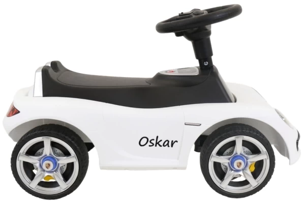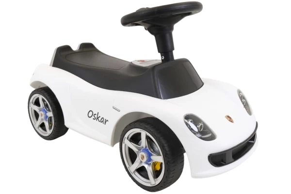 Personaliseer de witte Porsche Carrera GT loopauto met een eigen naam! In deze set ontvang je twee zwarte naamstickers die je naar wens op de zijkanten van de loopauto kunt aanbrengen. Vul een naam in van maximaal 10 karakters en maak de auto helemaal uniek. Je ontvangt een duidelijk stappenplan voor het eenvoudig aanbrengen van de stickers.